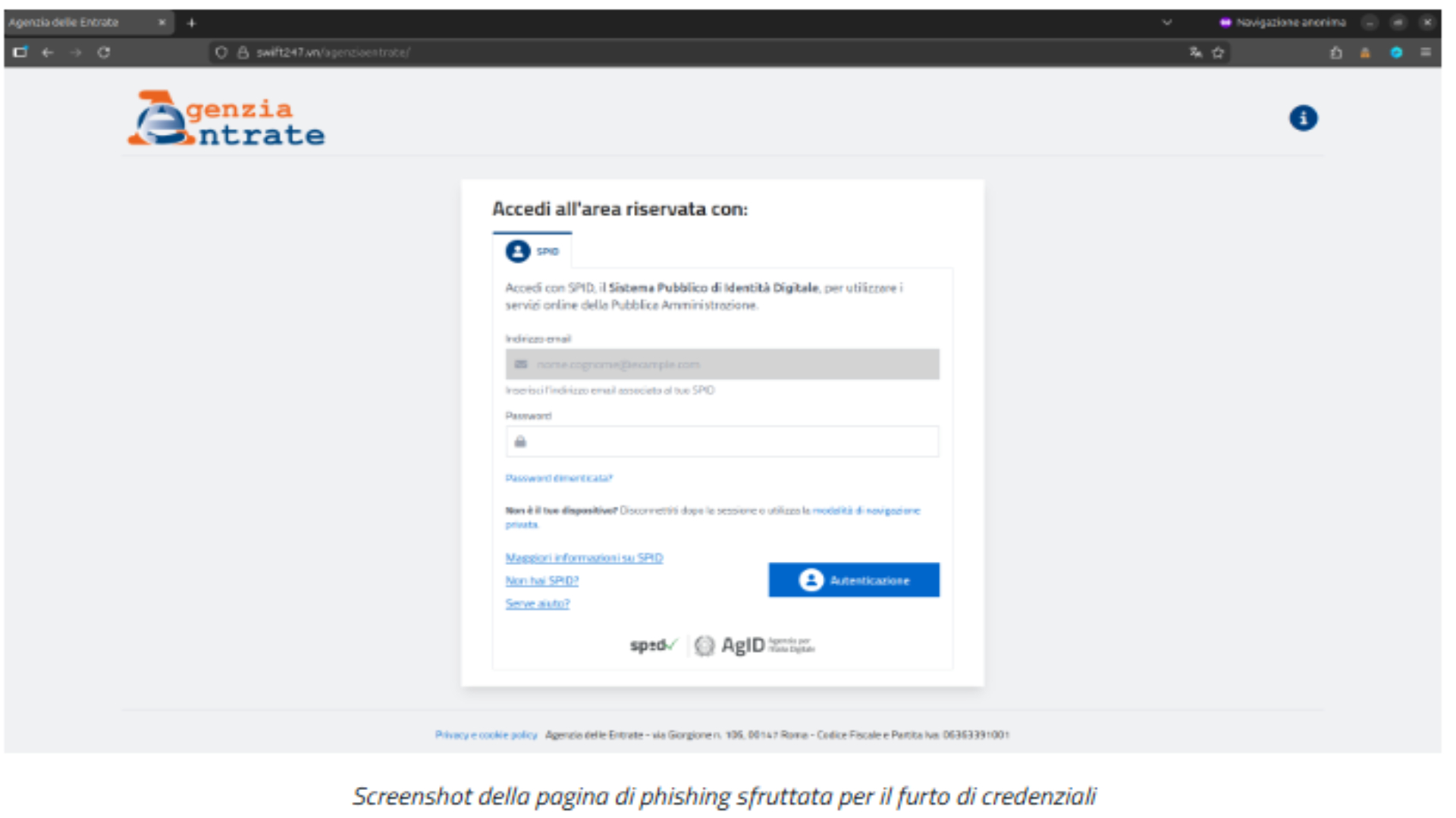Il nuovo allarme phishing proviene dall'Agenzia delle Entrate, identificata una pagina web realizzata da truffatori allo scopo di rubare le credenziali SPID, prestate molta attenzione ai messaggi che ricevete!