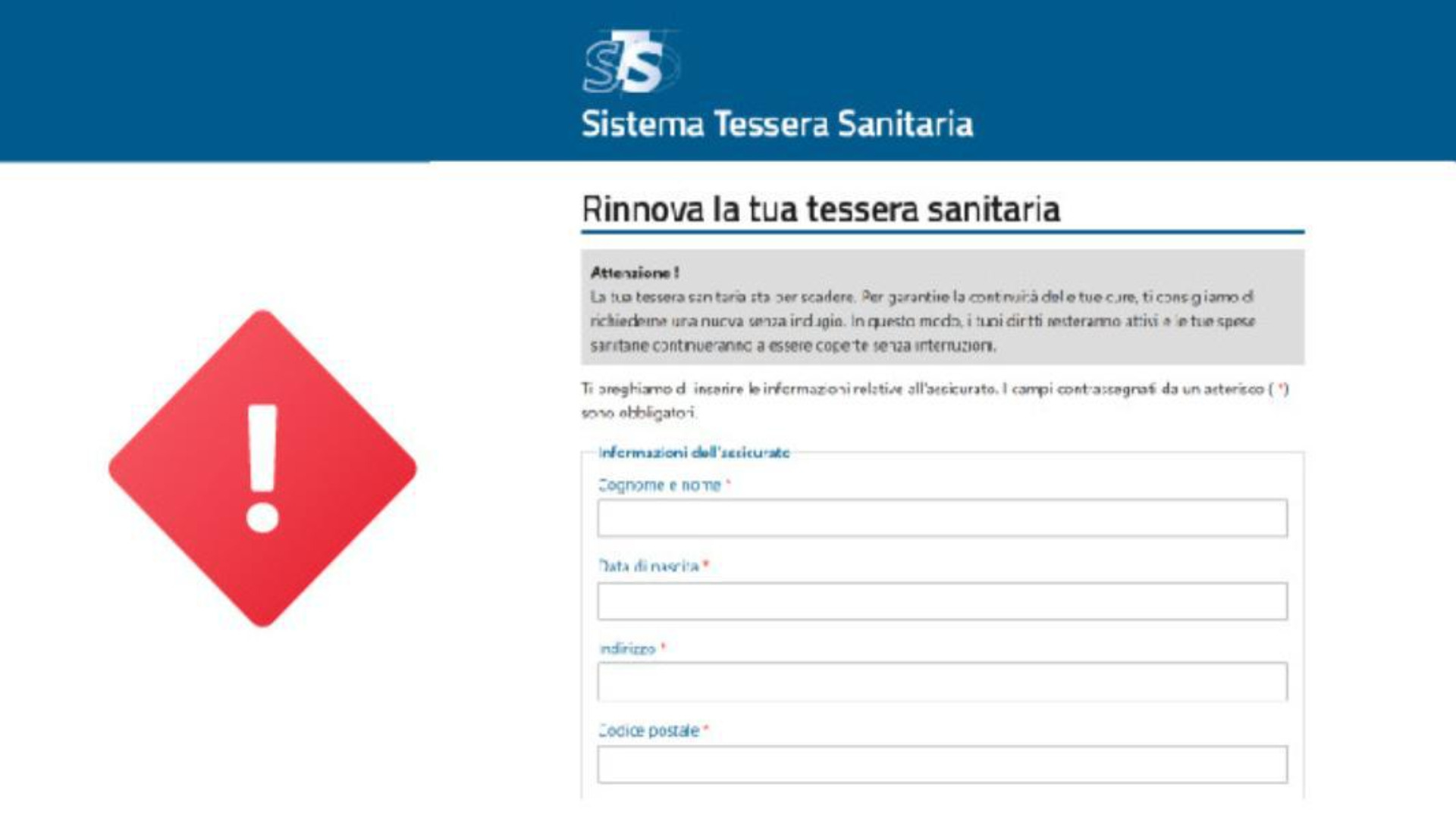 Il Ministero della Salute non invia email con link per il rinnovo della tessera sanitaria né richiede l’inserimento di dati personali tramite moduli online non istituzionali.